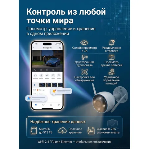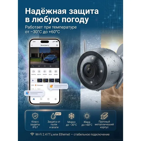 EZVIZ H3 (5МП) — это идеальный страж для вашего дома, сочетающий высокое 5-мегапиксельное разрешение, интеллектуальную аналитику на борту и надежную всепогодную защиту. Цветное ночное видение, активная защита с сиреной и прожектором, а также возможность мгновенно связываться с посетителями через приложение делают эту камеру незаменимой для тех, кто ценит безопасность и комфорт. Благодаря поддержке карт памяти до 512 ГБ и облачному сервису EZVIZ, ваши записи всегда будут в сохранности.
