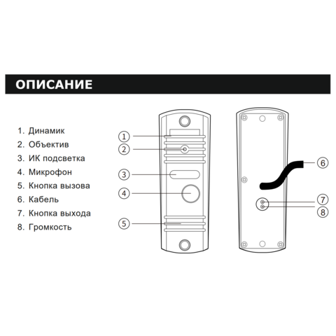 | Назначение: | Видеодомофония, использование вне помещений |