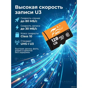 | Особенности: | Поддерживает скорость записи Class 10, UHS-I U3 |