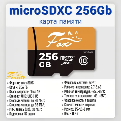 | Технические характеристики карты памяти Fox microSDXC 256Gb | |