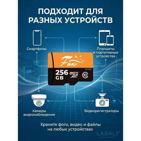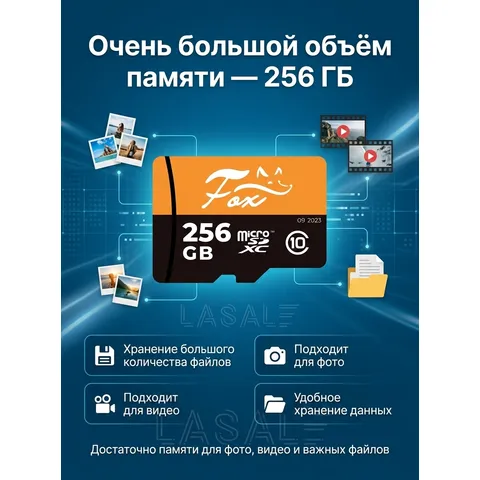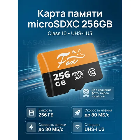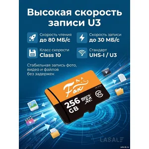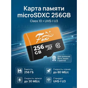 Fox microSDXC 256Gb — это мощное решение для хранения данных, разработанное для пользователей, которым требуется высокая производительность и большой объем. Благодаря классу скорости U3 и скорости записи 30 МБ/с, карта идеально подходит для записи 4K-видео на экшн-камерах, дронах и видеорегистраторах. Объем 256 ГБ позволяет хранить огромные коллекции фотографий, музыки и приложений. Высокая скорость чтения 80 МБ/с обеспечивает комфортную работу и быстрый обмен файлами. Надежность и устойчивость к внешним воздействиям делают эту карту отличным выбором для активного использования в любых условиях.