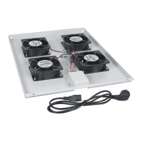 TRAY-80 — это потолочный вентиляторный модуль, предназначенный для охлаждения внутренней части телекоммуникационного шкафа путём отвода тепла наружу. Устройство оснащено четырьмя вентиляторами, работающими от сети напряжением 220В и подключаемыми через шнур питания IEC 320 C13/Schuko длиной 1,5 метра. Модуль выполнен из металла толщиной 1,2 мм и покрыт порошковой краской светло-серого цвета (RAL7035), что обеспечивает прочность и привлекательный внешний вид. Вентиляторы обеспечивают производительность до 600 м³/ч, создавая оптимальный микроклимат внутри шкафа и продлевая срок службы установленного оборудования. Модуль устанавливается на верхнюю часть шкафа и крепится при помощи комплекта крепежа, который входит в поставку вместе с паспортом изделия.