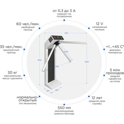 | Тип устройства: | Электромеханический турникет-трипод |