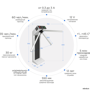 | Габаритные размеры турникета с планками: | 750х790х955 мм |