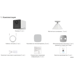 | Особенности: | Перезаряжаемый аккумулятор, магнитное основание, поддержка карт памяти до 512 ГБ, PIR-детекция, двухсторонняя аудиосвязь |