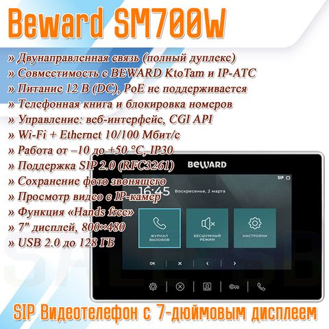 SM700W — это надежное и функциональное решение для организации систем голосовой и видеосвязи, которое обеспечит комфорт и безопасность эксплуатации устройства в составе соответствующих систем.