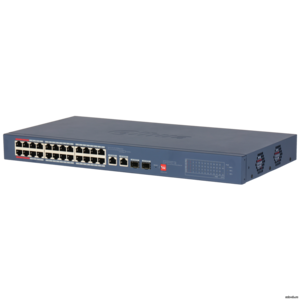 Dahua DH-CS4226-24ET-240 (L2) — это управляемый 26-портовый коммутатор уровня L2 с 24 портами PoE 10/100 Мбит/с и 2 комбинированными гигабитными uplink-портами (RJ45/SFP), разработанный для крупных систем IP-видеонаблюдения. Устройство поддерживает современные стандарты питания: IEEE 802.3af (PoE), IEEE 802.3at (PoE+), Hi-PoE и IEEE 802.3bt (4PPoE). Особенностью модели является поддержка Hi-PoE до 90 Вт на портах 1–4, что позволяет подключать до четырёх мощных устройств, таких как PTZ-камеры с обогревом, тепловизоры, радиомосты или мультидатчиковые камеры.
