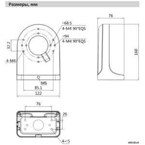 | Назначение | Установка купольных, мини-купольных и камер в корпусе «шар» |