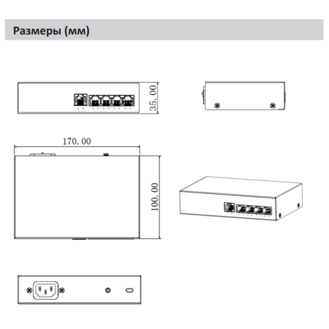 | Размеры (Ш×Г×В) | 170 мм × 100 мм × 35 мм |