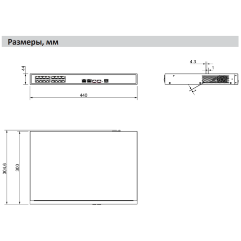 Коммутатор устанавливается в 19-дюймовую стойку (1U) в: