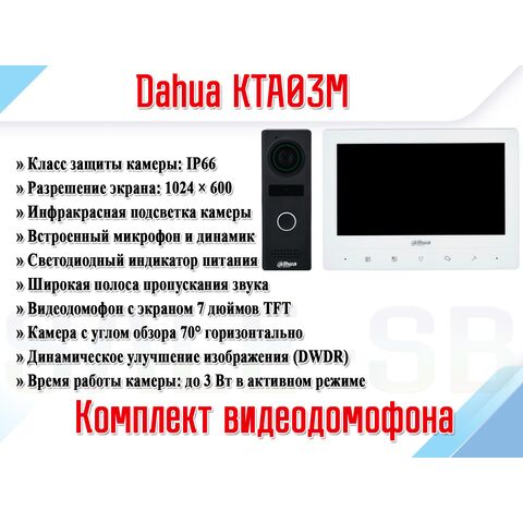 Комплект видеодомофона Dahua DHI-KTA03M включает в себя внутренний монитор DHI-VTH1020J-T и наружную дверь-консоль DHI-VTO1000JM, обеспечивая удобные и эффективные решения для организации домашней или коммерческой системы видеонаблюдения и связи.