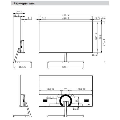 | Размеры: | 492.7 мм × 284 мм × 48.4 мм (с подставкой) 598 мм × 99 мм × 366 мм (в упаковке) |