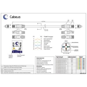 Патч-корд оснащен двумя разъемами RJ45 (8p8c), обжатыми по схеме Т568В, что обеспечивает надежную передачу данных на скоростях до 100 МГц. Применяются проводники из чистой меди диаметром 24 AWG, обеспечивающие минимальные потери сигнала и стабильность соединения.