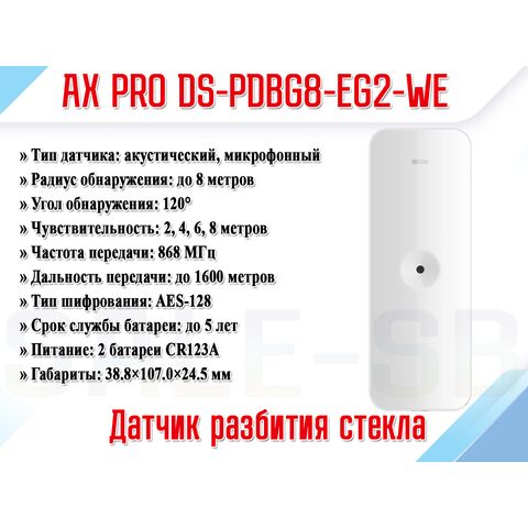 Беспроводной датчик разбития стекла AX PRO BreakGlass DS-PDBG8-EG2-WE предназначен для своевременного обнаружения разрушений стеклянных поверхностей, таких как окна, витрины или перегородки. Высокая чувствительность и встроенный всенаправленный микрофон позволяют устройству эффективно фиксировать характерные звуки, сопровождающие разрушение стекла, и отправлять тревожный сигнал на принимающее устройство.