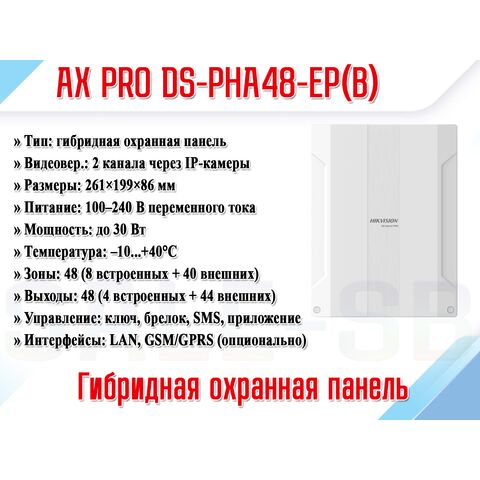 Гибридная панель AX PRO DS-PHA48-EP(B) представляет собой универсальное решение для организации систем безопасности и охраны объектов. Устройство объединяет в себе функции проводных и беспроводных систем, обеспечивая масштабируемость и гибкость в управлении.