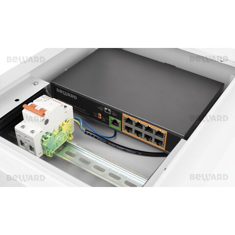 Уличный шкаф B-400x310x120-ST81 от компании Beward представляет собой готовое решение для организации уличного узла видеонаблюдения на восемь камер с поддержкой питания по технологии PoE. Устройство оснащено девятью портами 10/100 Мбит/с, из которых восемь поддерживают стандарт High PoE (30 Вт), что позволяет питать камеры с повышенным энергопотреблением.