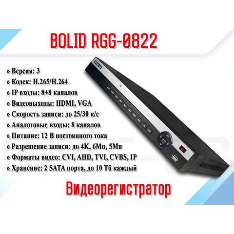 Таким образом, Bolid RGG-0822 — это современное и надежное решение для организации систем видеонаблюдения, сочетающее в себе широкие возможности по обработке и хранению данных, поддержку современных форматов и удобство эксплуатации.
