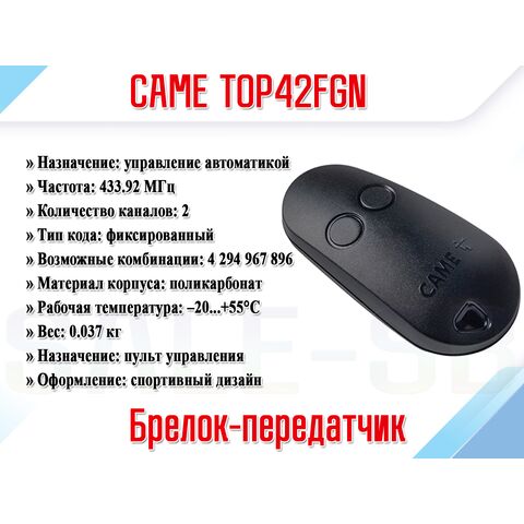 Таким образом, CAME TOP42FGN — это удобное и надежное решение для управления автоматическими системами, сочетающее в себе стильный дизайн, функциональность и простоту эксплуатации.