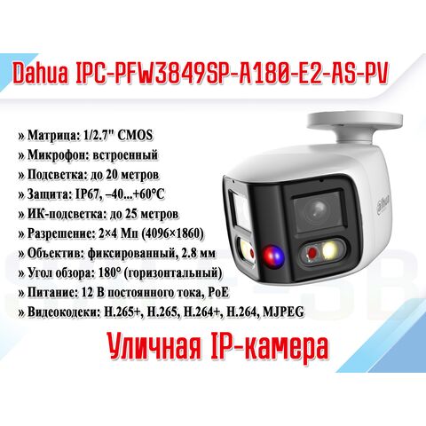 Таким образом, Dahua DH-IPC-PFW3849SP-A180-E2-AS-PV-0280B — это комплексное и функциональное решение для организации систем видеонаблюдения, сочетающее в себе высокое качество изображения, интеллектуальные функции и активную защиту от вторжений.
