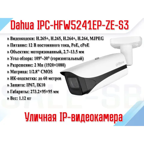 Таким образом, Dahua DH-IPC-HFW5241EP-ZE-S3 — это надежное и функциональное решение для организации систем видеонаблюдения, сочетающее в себе высокое качество изображения, интеллектуальные функции и устойчивость к внешним воздействиям.