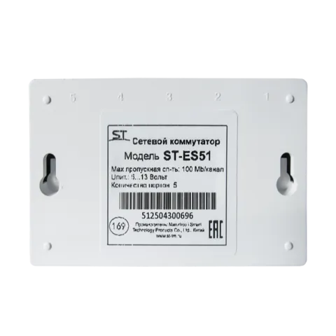 Сетевой коммутатор Space Technology ST-ES51 – это надёжное и компактное решение для организации локальных сетей в системах видеонаблюдения, офисах и домашних сетях. С пятью портами 10/100 Мбит/с и широким диапазоном питания от 5 до 13 В, он идеально подходит для установки в условиях с ограниченным доступом к стандартной электросети.