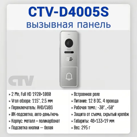 CTV-D4005S — это не просто вызывная панель. Это ваш личный визуальный и коммуникационный барьер, который делает ваш дом безопаснее, умнее и современнее. Она не требует сложной настройки, не боится мороза и дождя, не теряет качество изображения и всегда готова ответить на звонок.