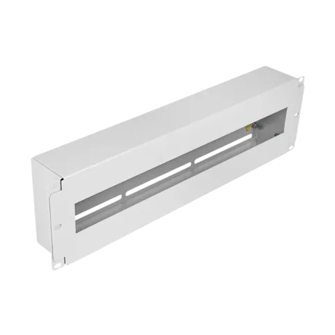 Компактная глубина 65 мм — идеальна для монтажа в узких шкафах, настенных панелях, в технических помещениях с ограниченным пространством. Съёмная передняя крышка — упрощает прокладку кабелей, обслуживание и замену оборудования без полного демонтажа. Металлический корпус — обеспечивает экранирование от электромагнитных помех и механическую защиту оборудования. Простота монтажа — не требует дополнительных креплений — устанавливается в шкаф как готовый модуль. Цвет RAL 7035 — нейтральный серый — легко интегрируется в любые технические решения и шкафы. |