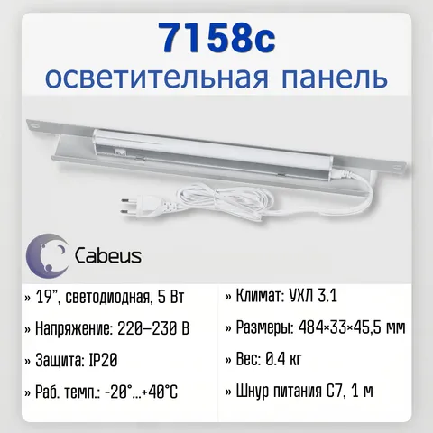 Cabeus 7158c JK03 — это профессиональная светодиодная осветительная панель, специально разработанная для равномерного и комфортного освещения коммутационного поля в 19-дюймовых серверных шкафах и стойках. Идеально подходит для центров обработки данных, телеком-помещений, офисных серверных и технических комнат, где точность при обслуживании кабелей и оборудования критична.