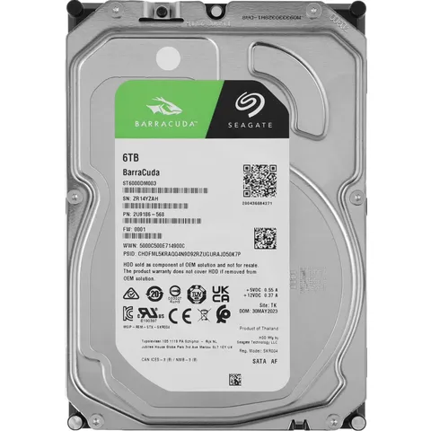 Жесткий диск Seagate Barracuda ST6000DM003 объёмом 6 ТБ предназначен для использования в настольных компьютерах. Модель с технологией записи SMR обеспечивает высокую скорость чтения данных и большой объём кэш‑памяти. Устройство оптимально подходит для периодической нагрузки (несколько часов в день), отличается тихой работой.