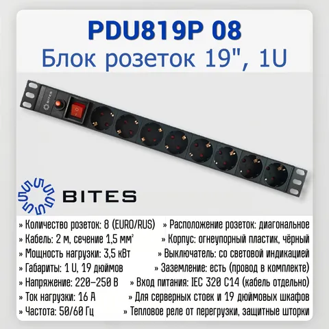 Технические характеристики блока розеток 5bites PDU819P‑08 (19")