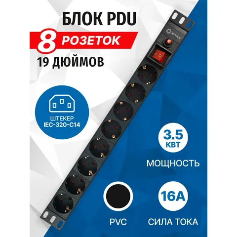 - Подходит для решения задач по распределению электропитания, при нехватке длины шнура питания оборудования, а также для подключения нескольких видов сетевого оборудования.