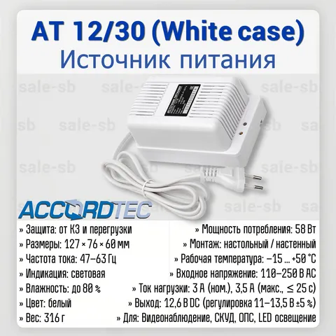 Технические характеристики источника стабилизированного питания ACCORDTEC AT‑12/30_White case (AT‑02461)