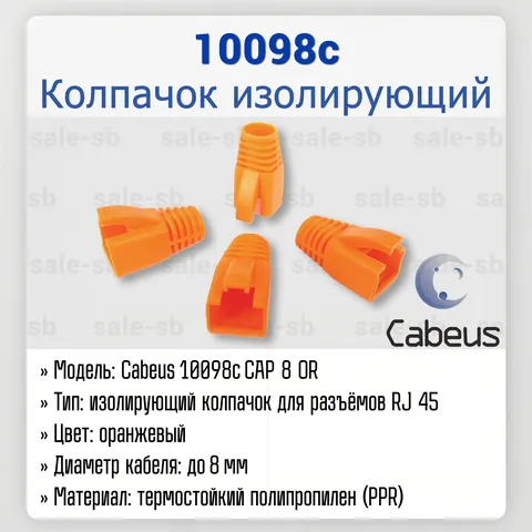 Изолирующий колпачок Cabeus CAP‑8‑OR (арт.: 10098c) предназначен для механической защиты места соединения коннектора RJ‑45 с кабелем. Устройство увеличивает срок службы коннектора и обеспечивает правильный радиус изгиба кабеля. Оснащён конструктивным выступом для защиты замка коннектора от повреждений.