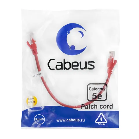 CABEUS PC-UTP-RJ45-Cat.5e-0.3m-RD патч-корд U/UTP,категория 5е, 2xRJ45/8p8c, неэкранированный, крас