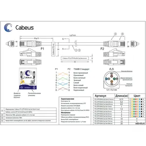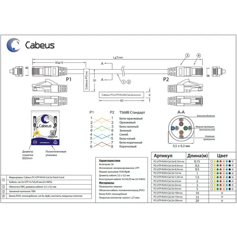 | Модель: | Cabeus PC‑UTP‑RJ45‑Cat.5e‑0.5m‑BK |