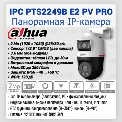 | Модель: | Dahua DH‑IPC‑PTS2249B‑E2‑S‑PV‑PRO |