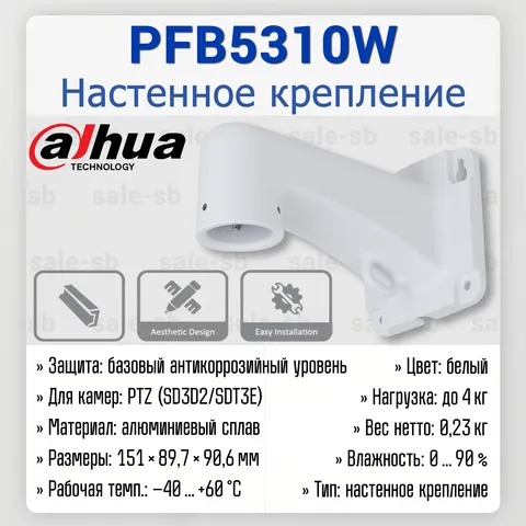 - конструкция из алюминиевого сплава — лёгкость, прочность и долговечность; - компактная и элегантная форма — удобство установки небольшой PTZ‑видеокамеры; - простое и надёжное настенное крепление. |