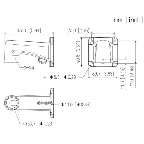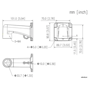 Настенный кронштейн для PTZ‑видеокамер. Изготовлен из алюминиевого сплава — лёгкого, прочного и долговечного материала. Отличается компактной и элегантной конструкцией, упрощающей монтаж небольших PTZ‑камер.