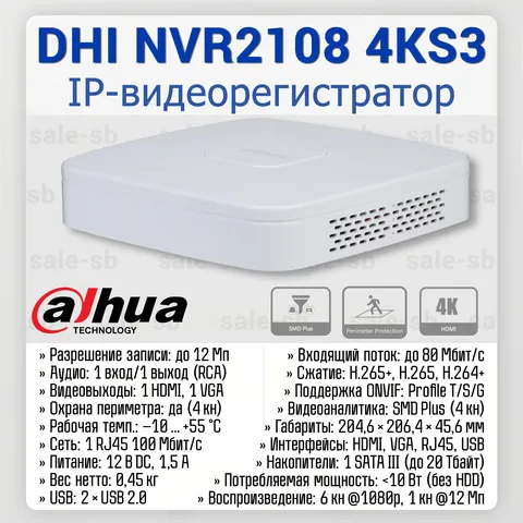 | Модель: | Dahua DHI‑NVR2108‑4KS3 |