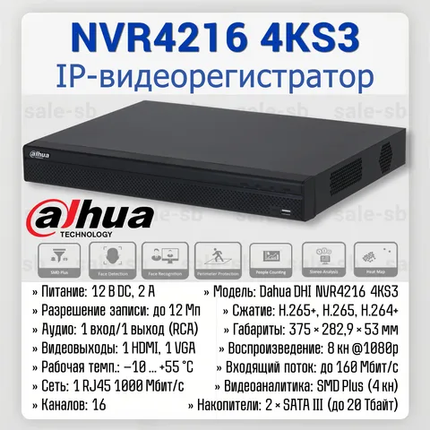 | Модель: | Dahua DHI‑NVR4216‑4KS3 |