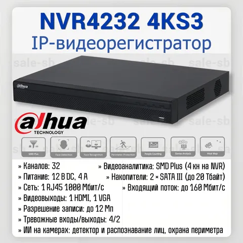| Модель: | Dahua DHI‑NVR4232‑4KS3 |