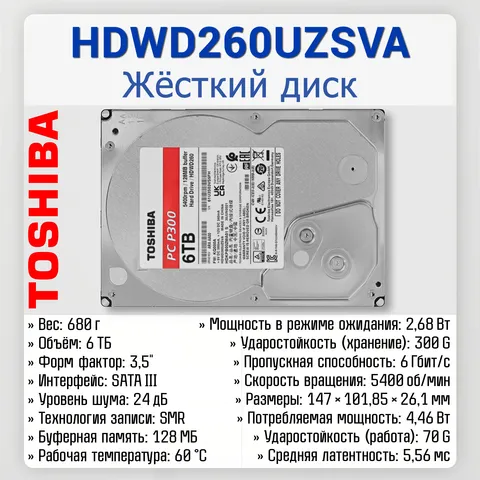 Внутренний жёсткий диск для ПК в форм‑факторе 3,5″. Подходит для хранения больших объёмов данных в домашних и офисных компьютерах. Отличается тихой работой и умеренным энергопотреблением.