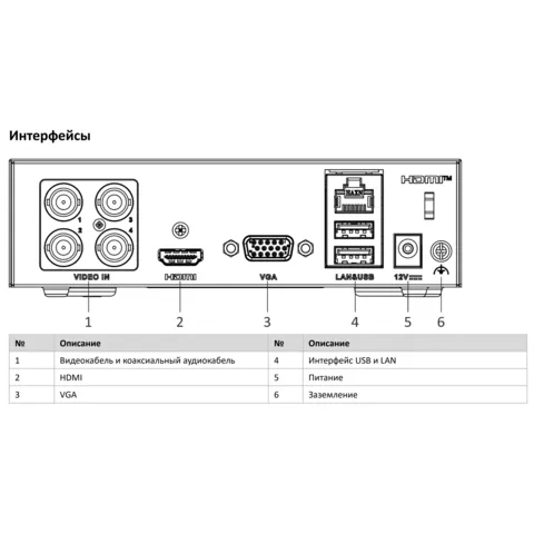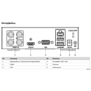 | Поддерживаемые камеры: | аналоговые, HD‑TVI, AHD, CVI + 1 IP‑канал |