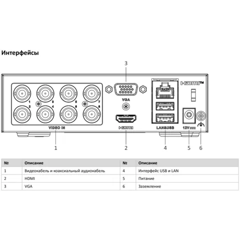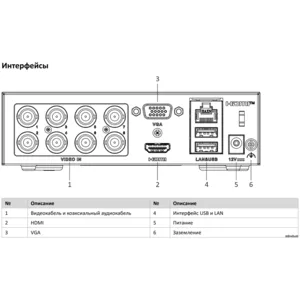 | Поддерживаемые камеры: | аналоговые, HD‑TVI, AHD, CVI + 2 IP‑канала |