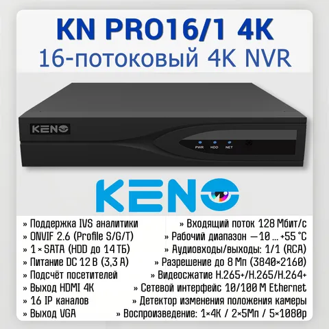 | Технические характеристики NVR Keno KN‑PRO16/1‑4K | |