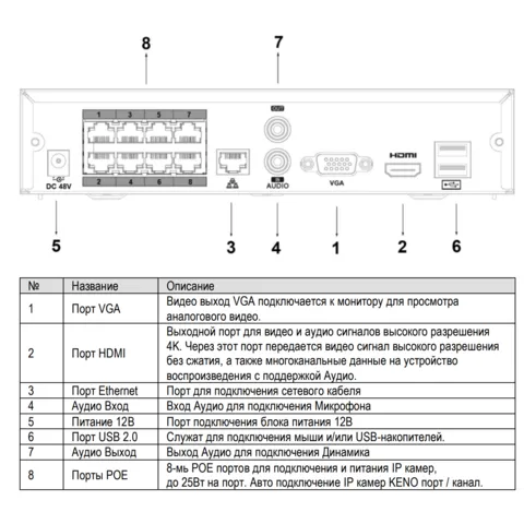 IP‑видеорегистратор с поддержкой до 16 камер разрешением до 8 Мп (3840 × 2160) и встроенным 8‑портовым PoE‑коммутатором. Оснащён IVS‑аналитикой, современными форматами видеосжатия (включая H.265+), интерфейсами 4K HDMI и VGA, возможностью установки HDD до 14 ТБ. Совместим с IP‑камерами KENO и оборудованием Dahua. Подходит для систем видеонаблюдения, где требуется упрощённый монтаж за счёт PoE.