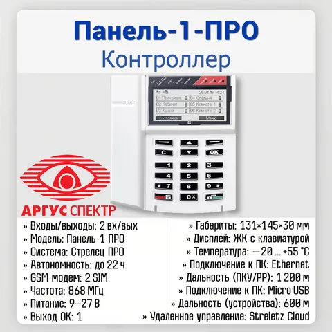 | Технические характеристики контроллера «Панель‑1‑ПРО» (Аргус‑Спектр) | |