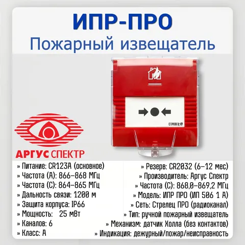 «ИПР‑ПРО» — ручной пожарный извещатель для работы в радиосети «Стрелец‑ПРО». Относится к классу А ручных пожарных извещателей.