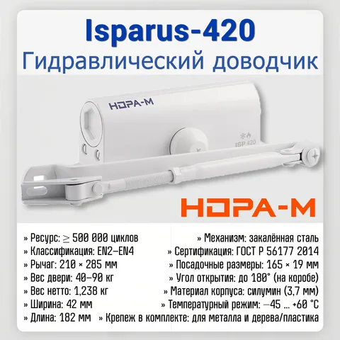 | Технические характеристики дверного доводчика «НОРА‑М ISPARUS 420» | |