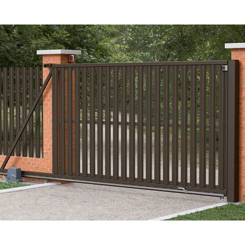 Привод является самоблокирующимся — при закрытых воротах створку невозможно переместить вручную без разблокировки механизма.
